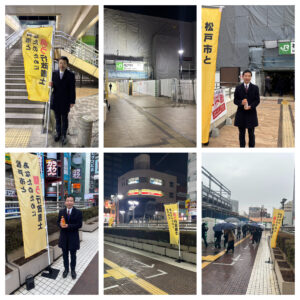 実はここ最近、毎朝欠かさず松戸駅の東口と西口に立ち、通勤・通学で行き交う皆様への朝のご挨拶と、私の市政に対する想いをお訴えさせていただいております。