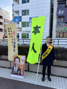 【松戸駅東口での駅頭のご報告】「本人」のぼりとタスキを新調しました!正面と背中に背負った私の「譲れない思い」